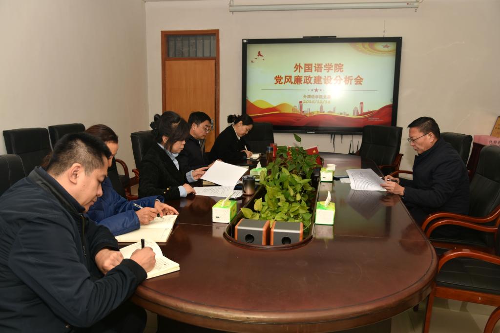 为全面总结年度党风廉政建设工作,分析当前形势,部署下一阶段任务,持续推进全面从严治党,2025年12月18日,外国语学院召开了党风廉政建设年度情况分析会。校纪委委员赵海峰到会指导,学院党政领导班子成员参加会议。会议由学院党委书记仇静莉主持。
